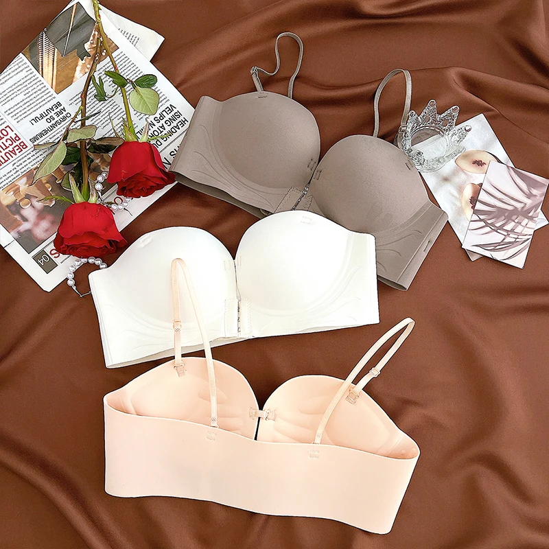 1Pc Sexy Front Closure Sexy Push Up Bra Women Invisible Bras Underwear Lingerie For Female Brassiere Strapless Seamless Bralette