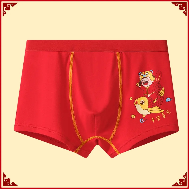 Keep your child comfortable and cheerful with this 2-piece set of Boys Cotton Boxer Briefs. Featuring bright tiger prints and lucky red color, these underwear are inspired by the Year of the Tiger, symbolizing strength, health, and good luck.