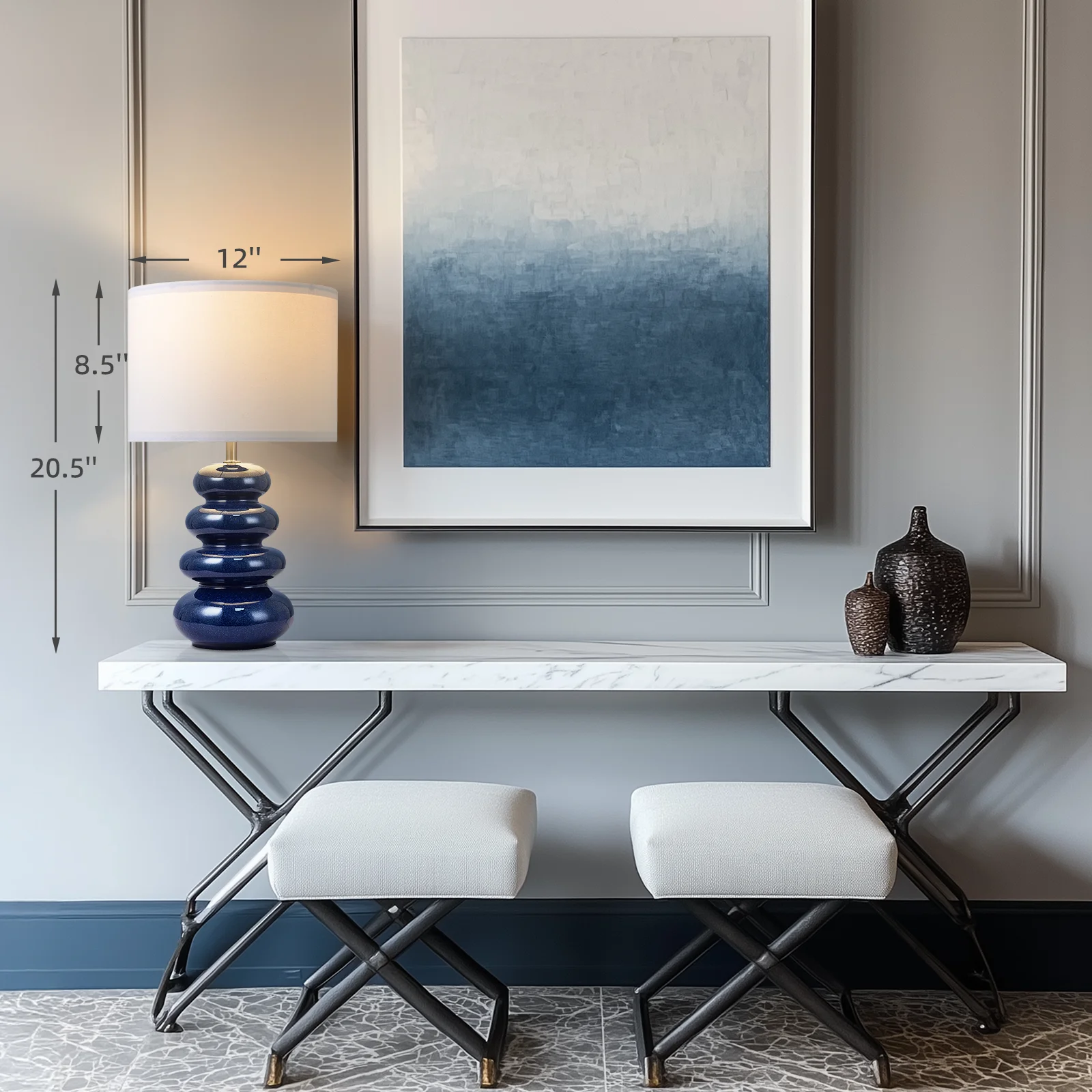 20” Navy Blue Ceramic Table Lamp with White Shade, Handmade Small Pottery Lamp for Living Room, Bedroom, Bedside Table