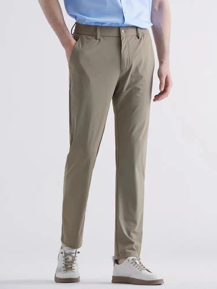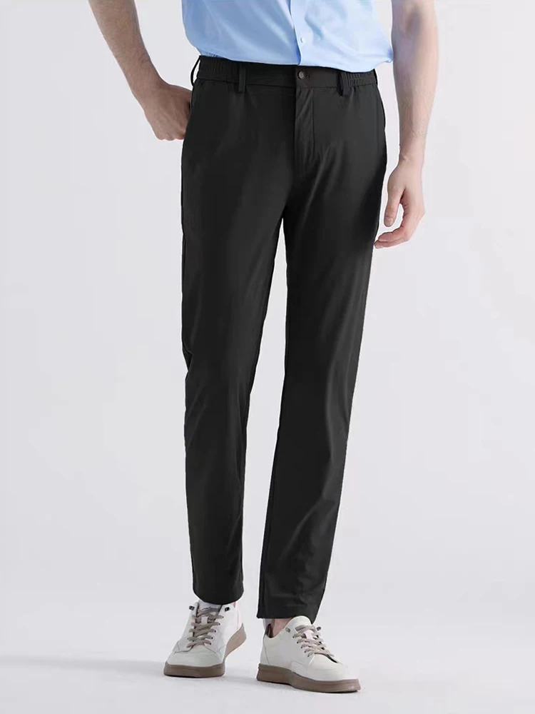 2022 New Summer Breathable Casual Pants Men Stretched Nylon Silk Cooling Slim Chinos Male Business Casual Straight Long Trousers