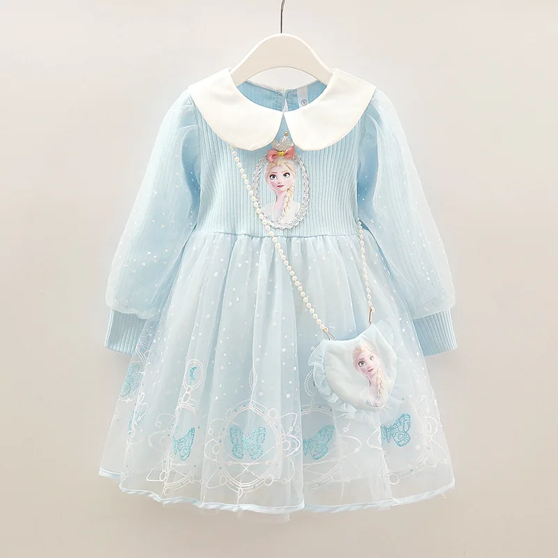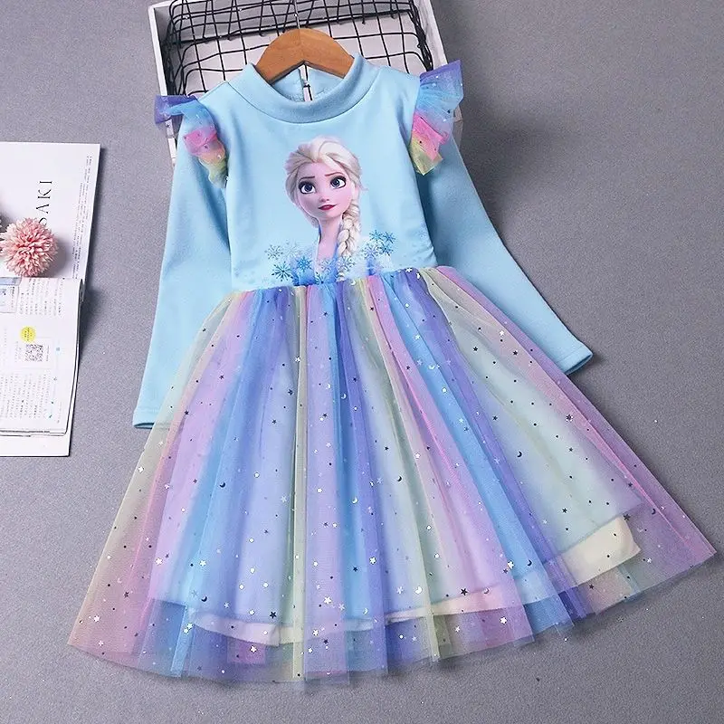 2025 New Elsa Princess Dress Girls Dress Spring Dress Party Long-sleeved Children’s Western Style Disney Frozen Formal Dress