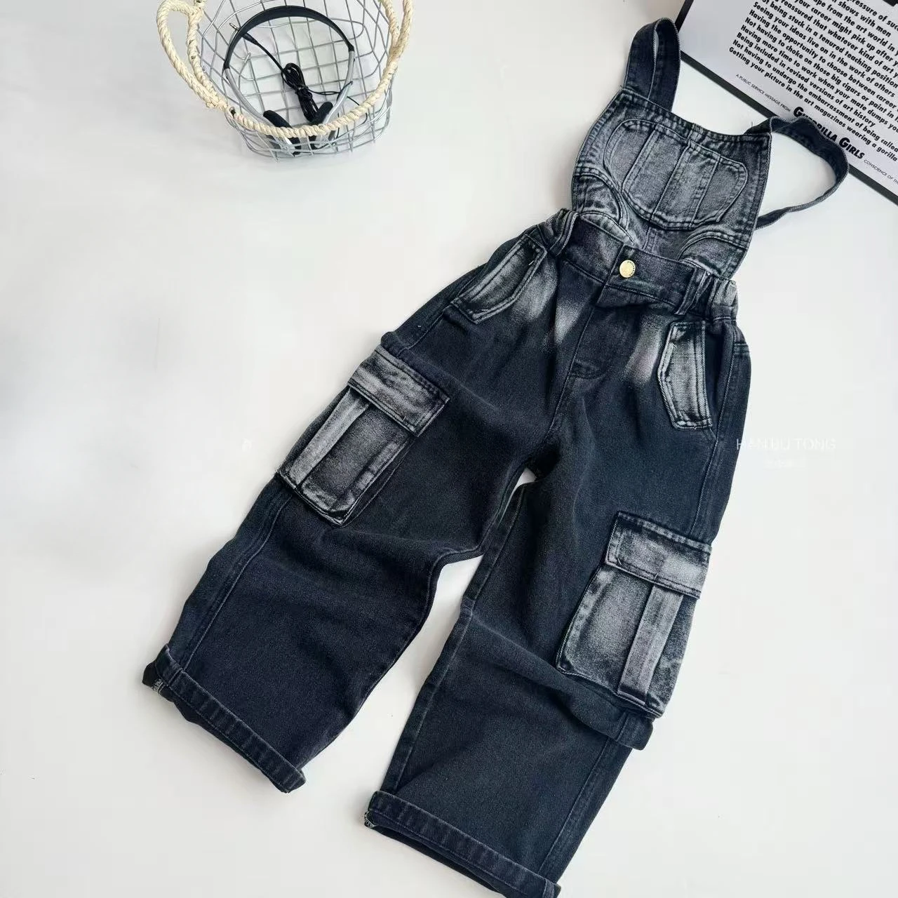 2025 Spring/Autumn Girls Denim Overalls Trendy Detachable Wide-Leg Jeans for Kids Stylish Versatile Casual Two Wear Trousers