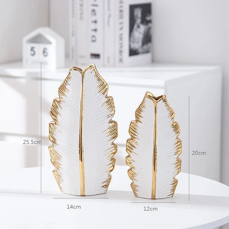 2Pcs/Nordic black gold plating leaf ceramic vase Modern simple household TV cabinet decoration vase