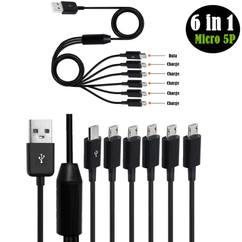 6 In 1 Micro USB/Type C Splitter Cable USB A 2.0 to 6 Micro USB/Type C Data Sync Charing Cable For Phone Tablet Pad