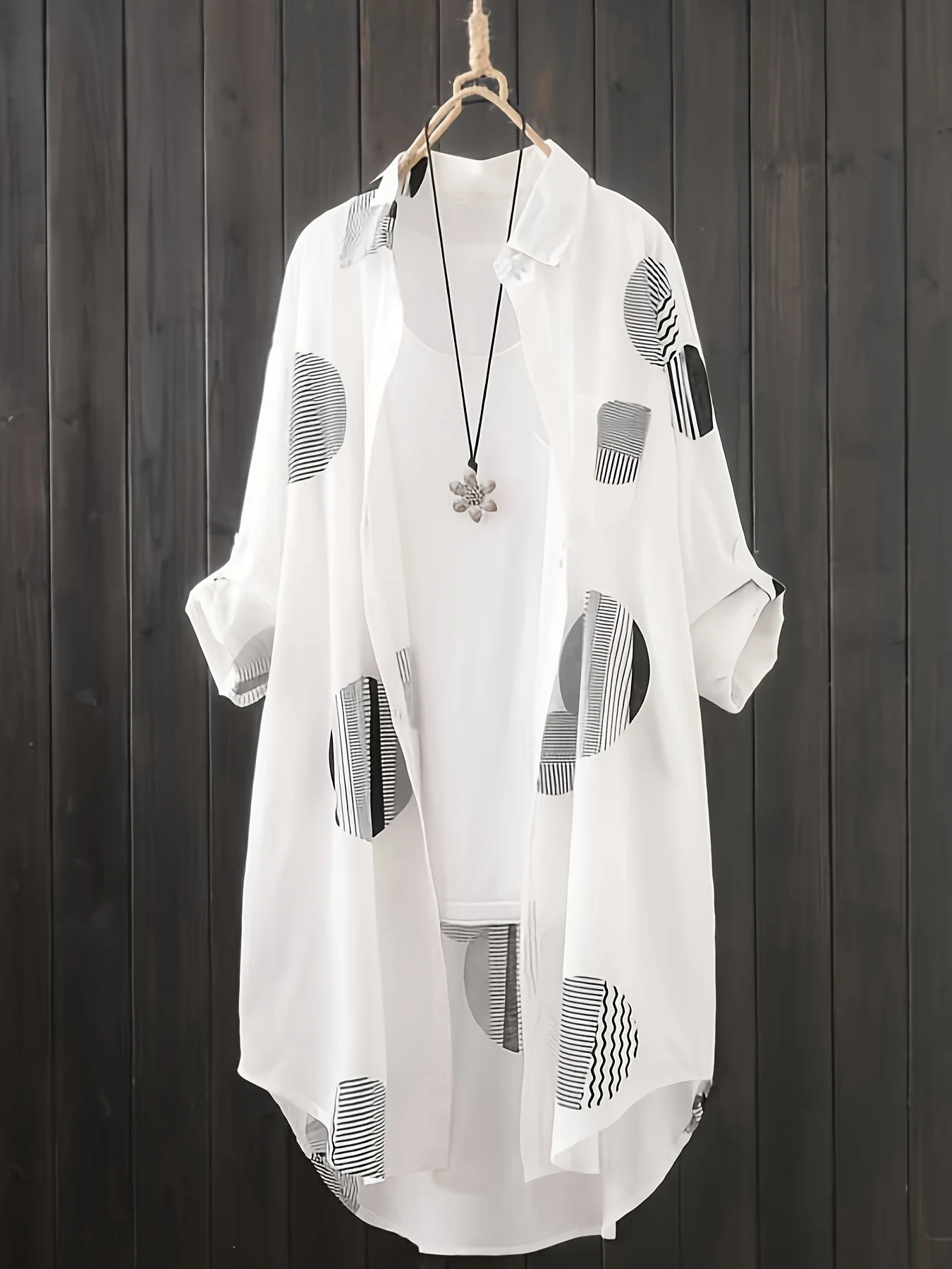 Black and White Large Size Shirt for Women’s Spring and Summer Travel Thin Top Sunscreen Breathable Clothes POLO Collar