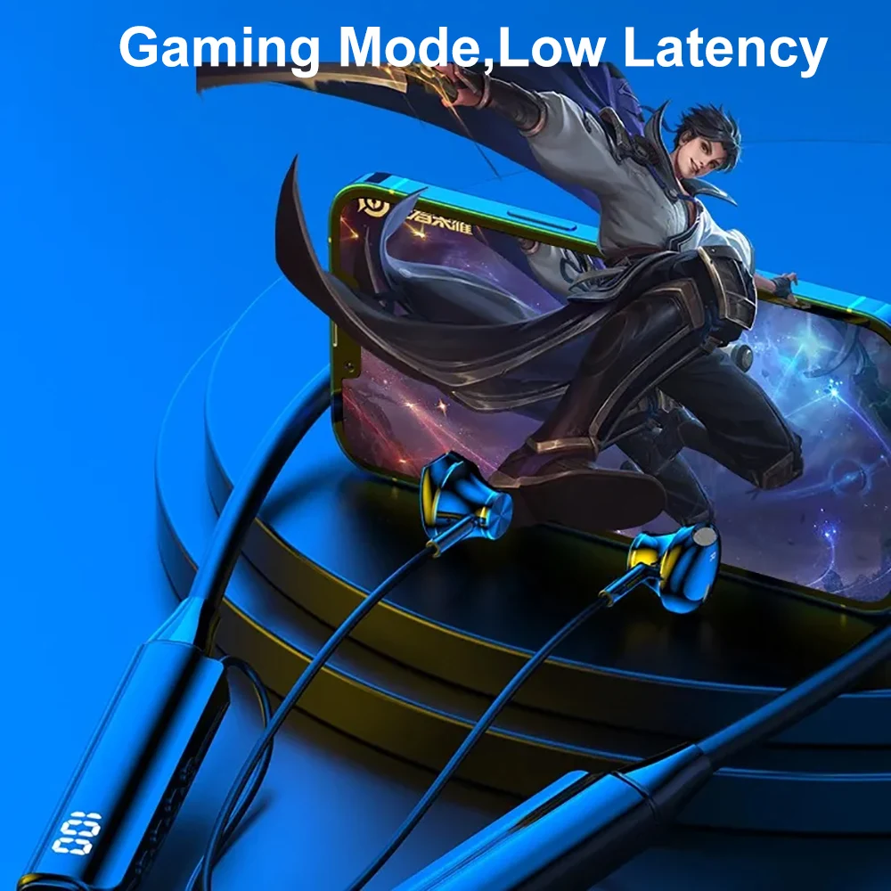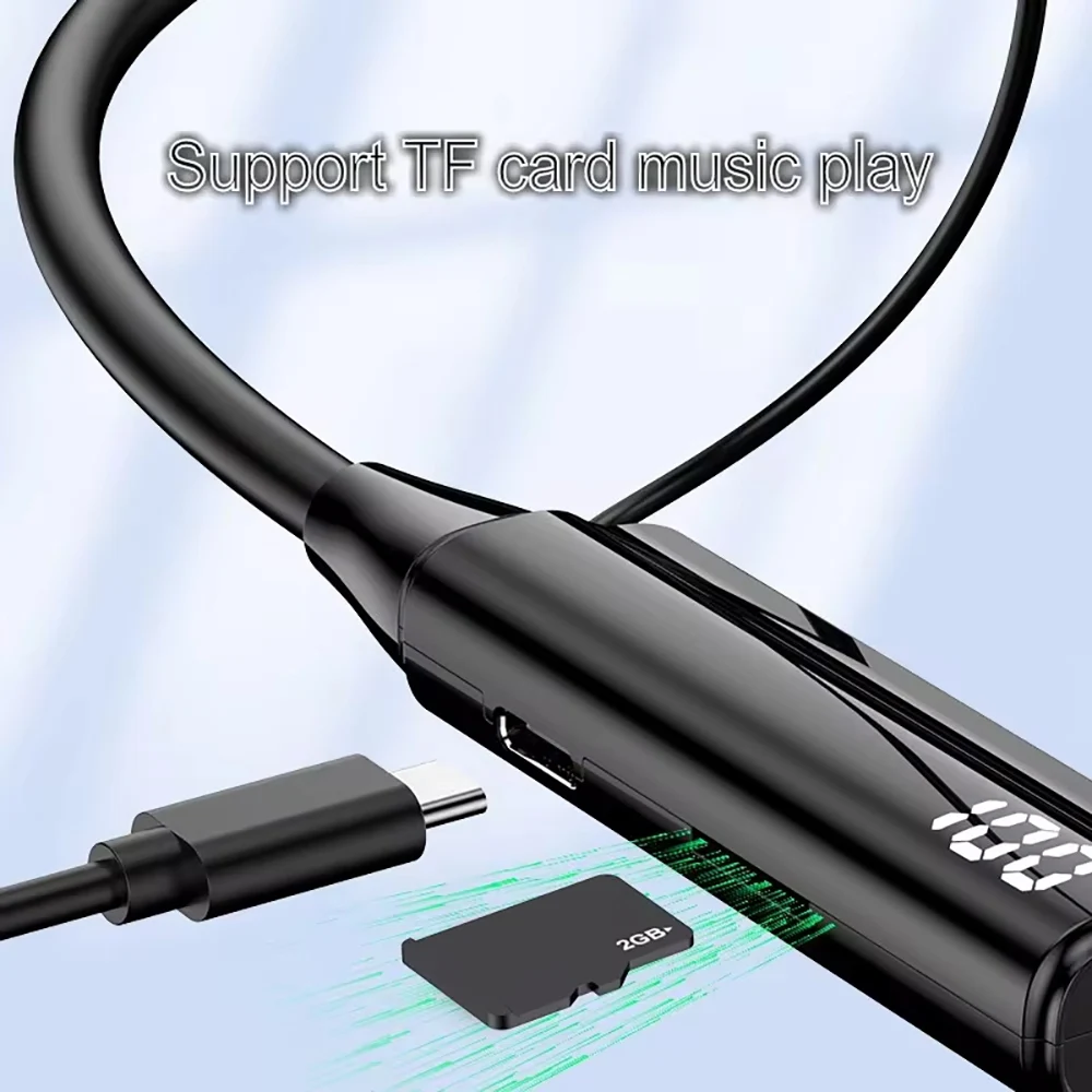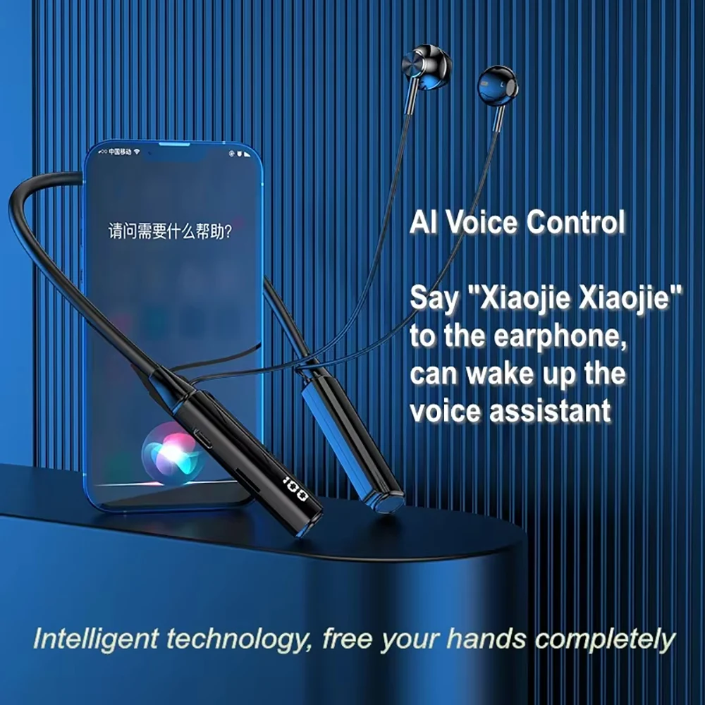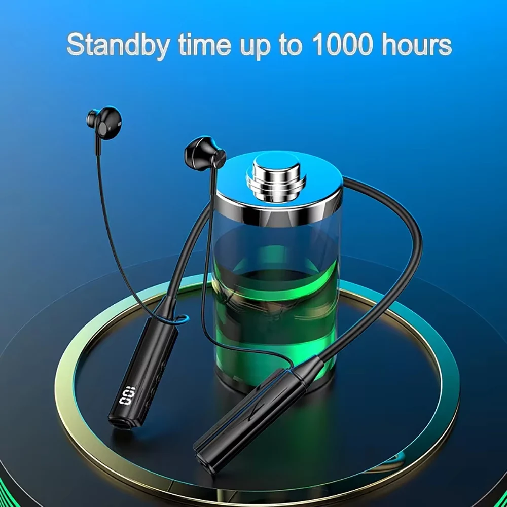 Bluetooth 5.3 Headphones Wireless Neckband Earphones HiFi Stereo Noise Reduction Headsets LED AI Assistant Waterproof Earbuds
