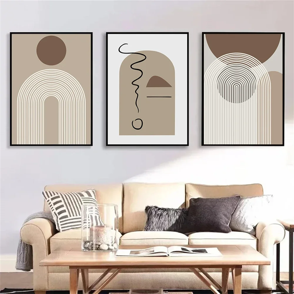 Boho Modern Abstract Line Posters and Prints Geometric Brown Beige Wall Art Canvas Painting Pictures Living Room Home Decoration