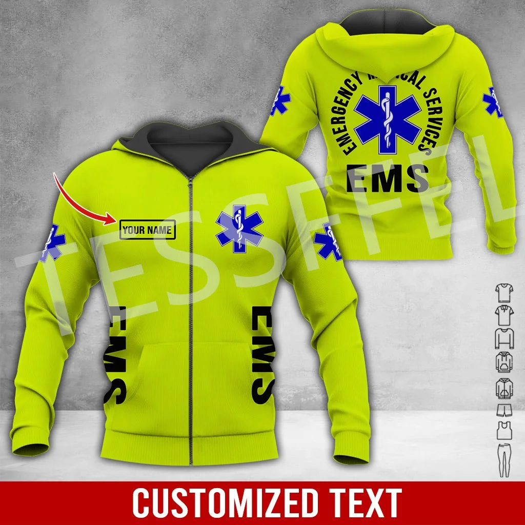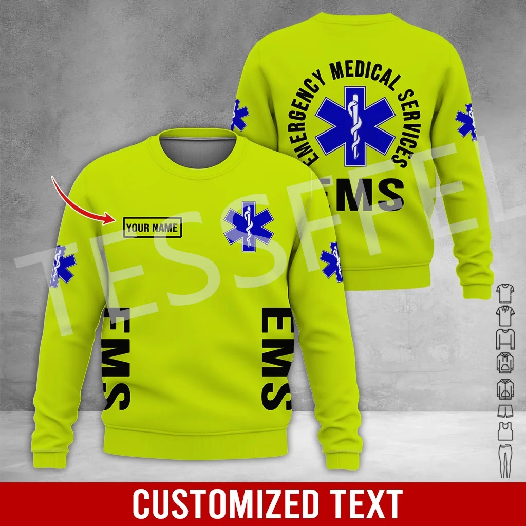 Custom Name Cosplay EMS EMT Medical Paramedic Worker Tattoo Tracksuit Vintage 3DPrint Pullover Harajuku Jacket Casual Hoodies X8