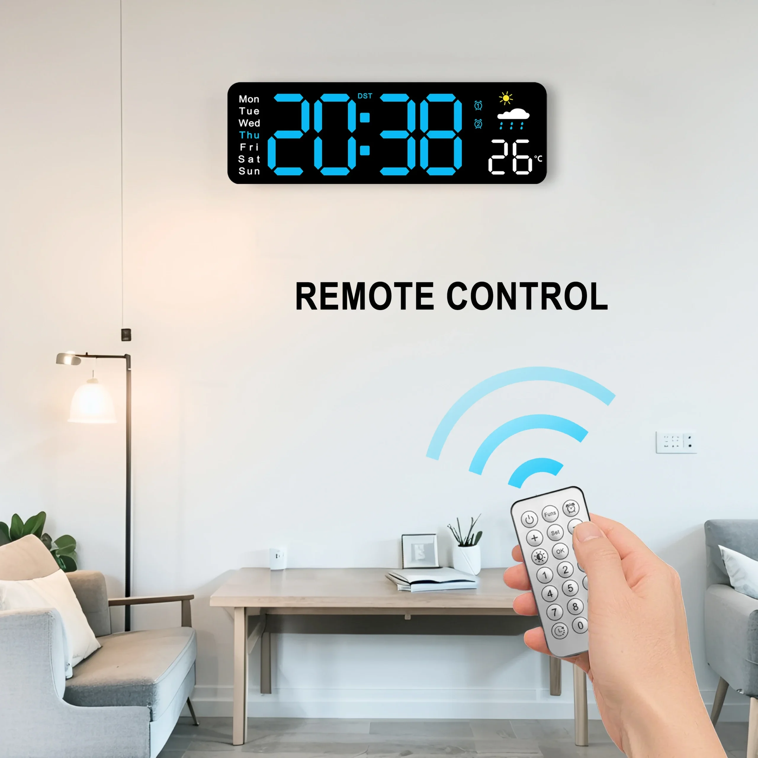 Digital Clock, 11″Display LED Wall Clock for Home Decor, Alarm, Timer, Automatic Brightness Dimmer Clock with Day/Date/Temp