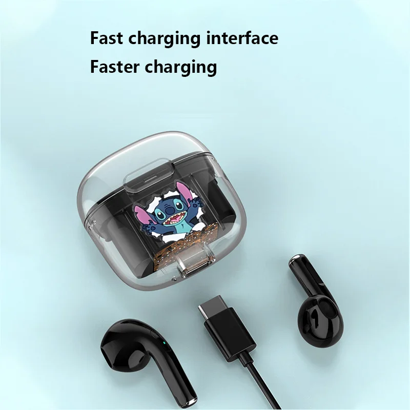 Disney Stitch Transparent charging Wireless Bluetooth Earbuds HiFi Sound HD Call Headsets Smart Touch Low Latency Long Endurance