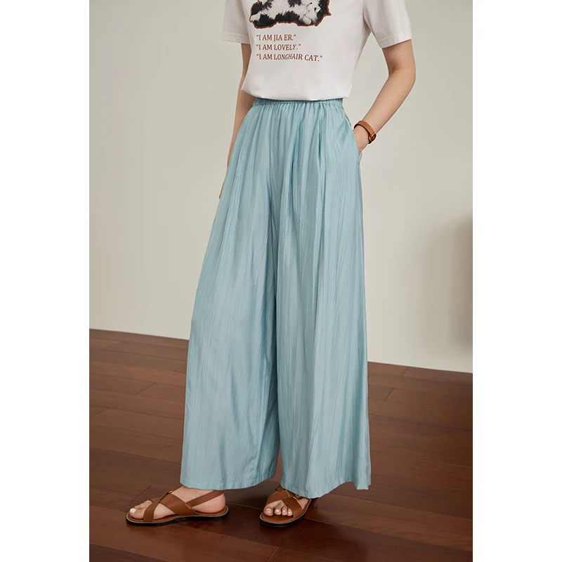 DUSHU【3 Colors】Women Summer Thin Trousers Sunpant Cool draped Long Pants Black Full Length Office Lady Elastic Waist Trouser