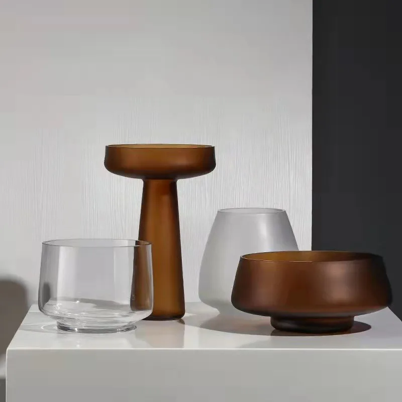 Home Decor Frosted Glass Vase Creative Ornaments Living Room Decoration Hydroponic Vase Nordic Dried Flower Vase