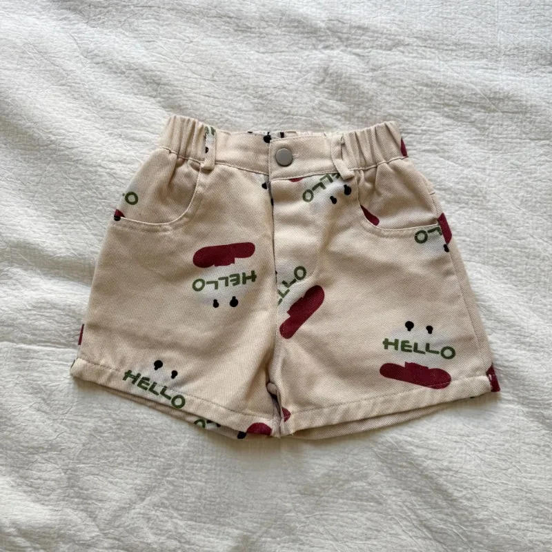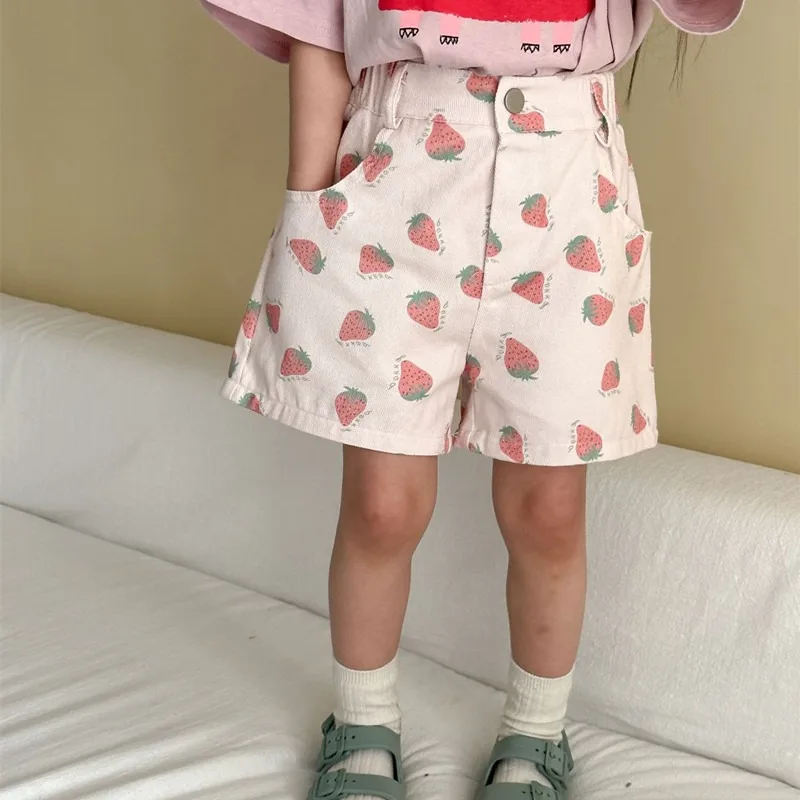 Kids Summer Cotton Shorts Strawberry Cartoon Print Boys Casual Loose Short Pants Girls Elastic Waist Baby Knee-length Pants