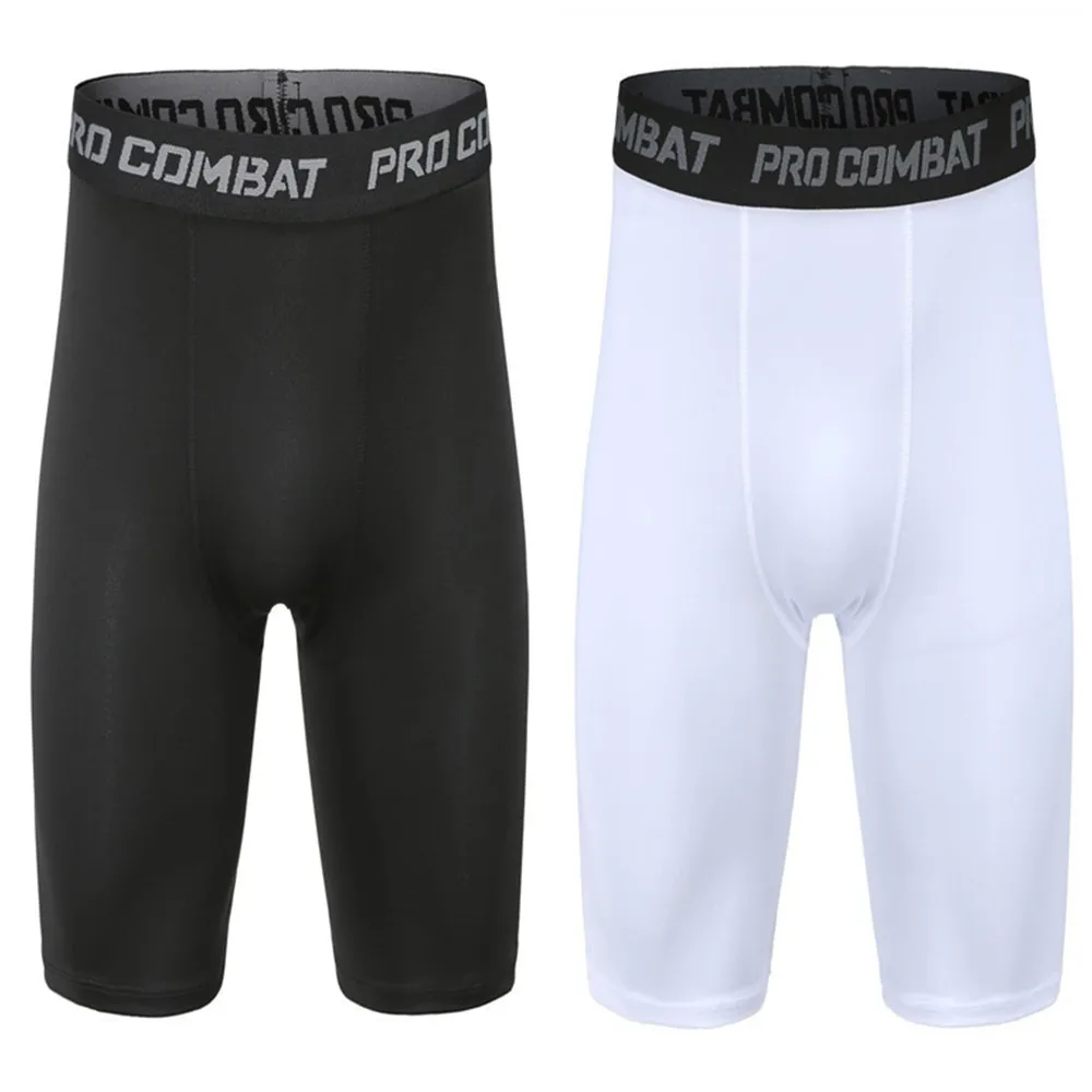Men Compression Base Layer Running Tight Shorts Sport 3/4 Cropped Pant Leggings Gym Basketball Fitness Exercise Cycling Trousers
