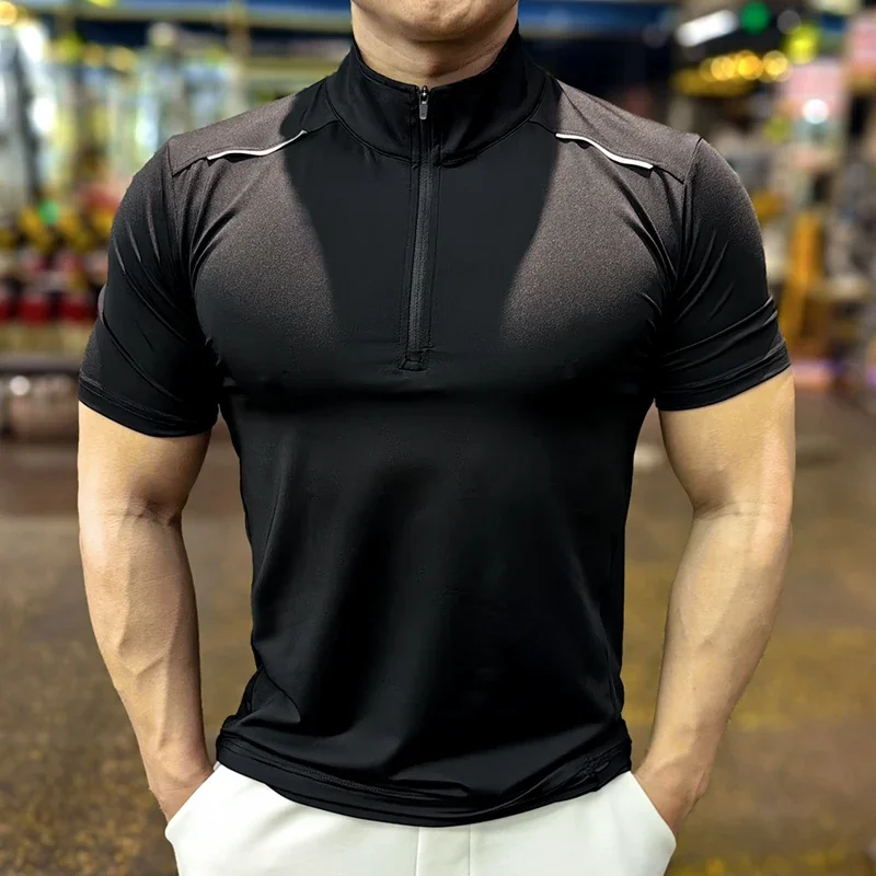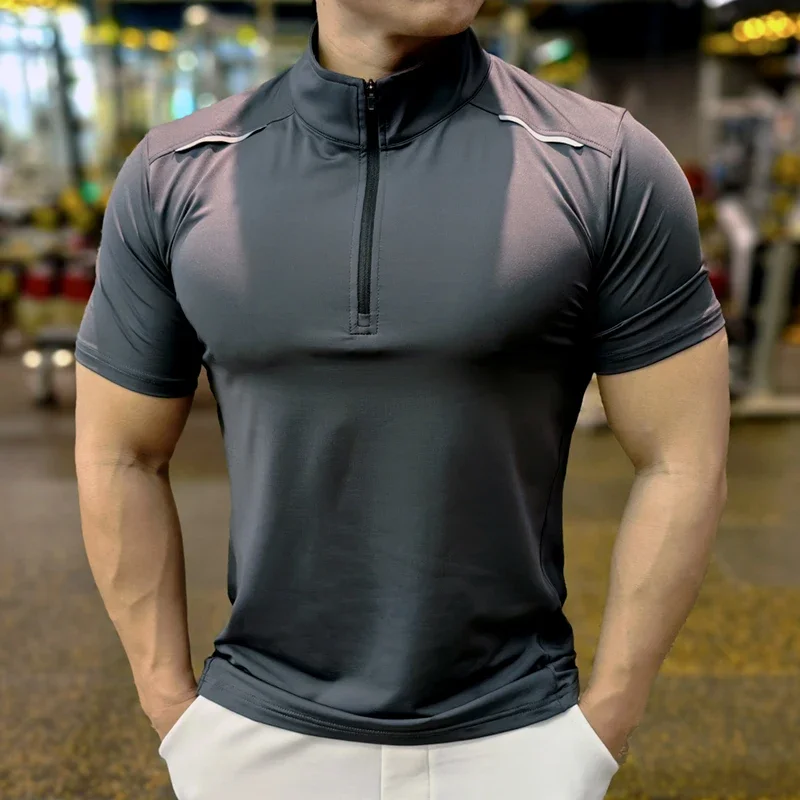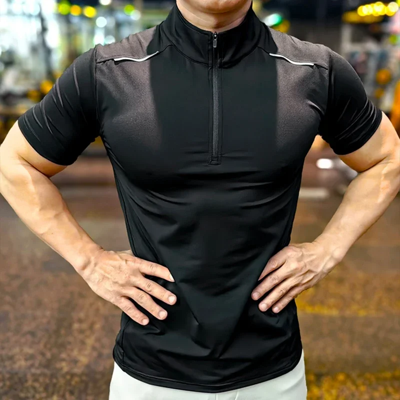 Men Running Short Sleeve T-shirt Outdoor Fitness Muscle Fit Shirt for Male Gym Jogging Sports Tops Tennis Elastic Breathable Tee