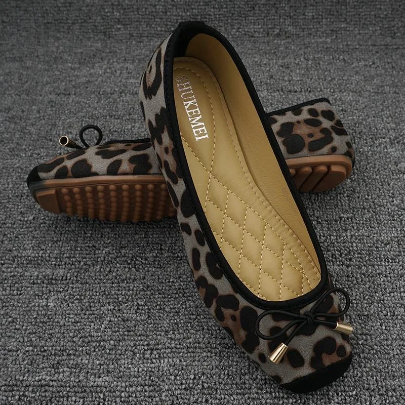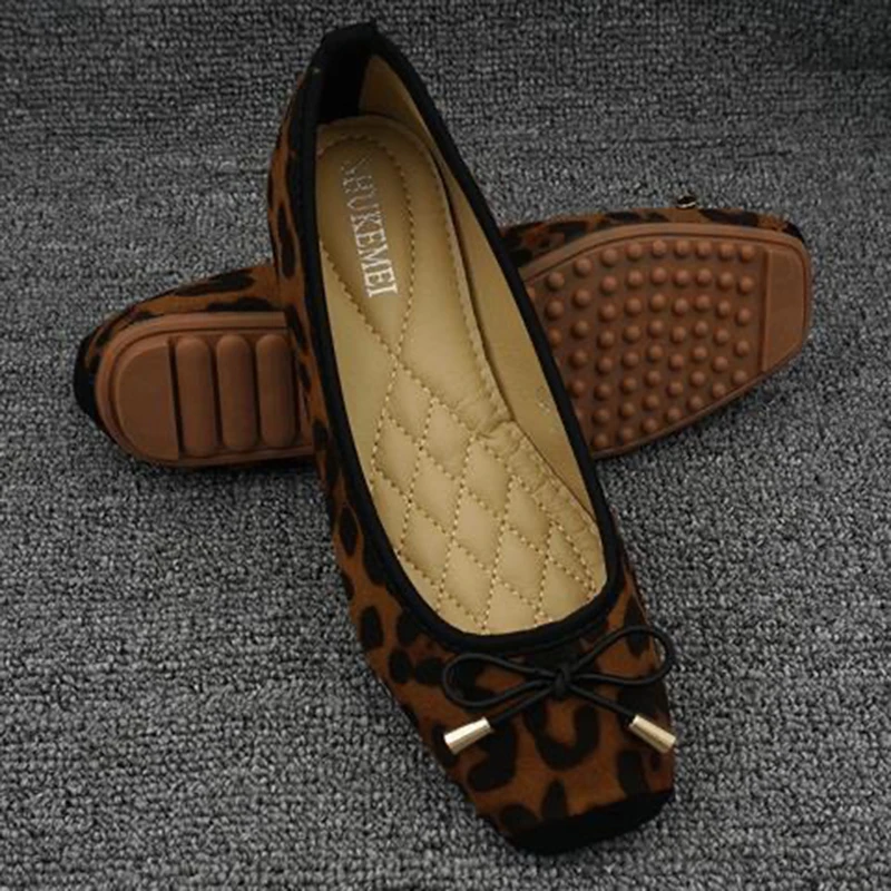 New Spring Summer Shoes Women Ballet Flats Sweet Flat Bowknot Laides Brand Shoes Big Size 42 Leopard DX295