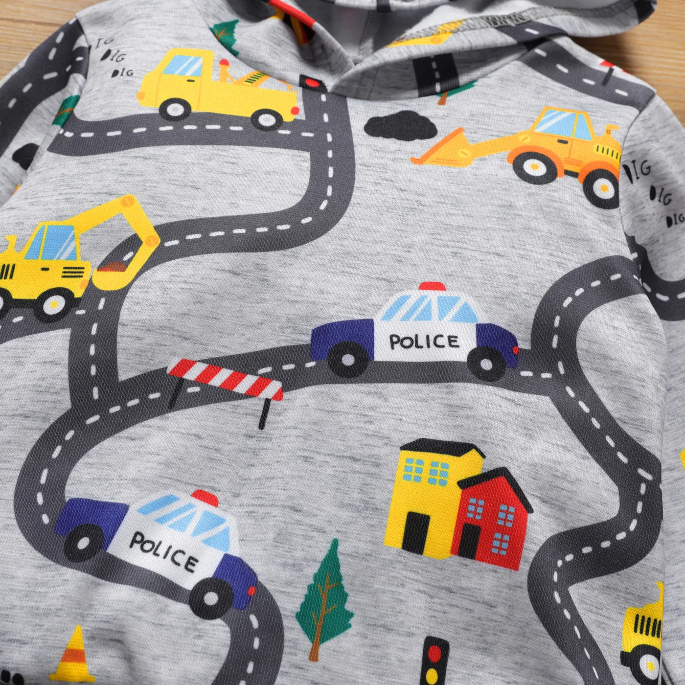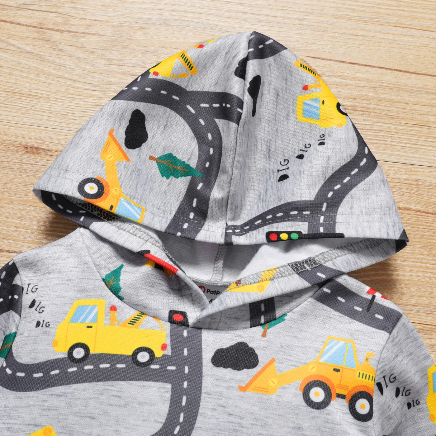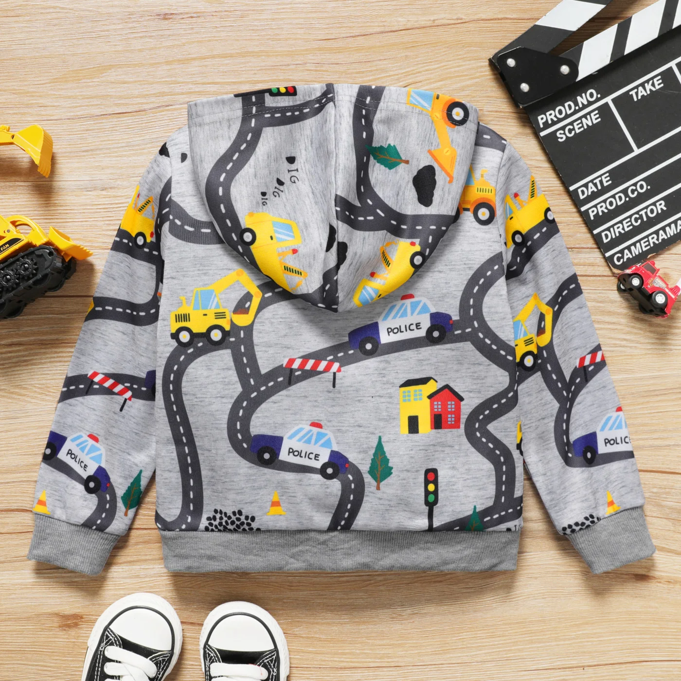 PatPat Toddler Boy Road Vehicle Print Hoodie Sweatshirt