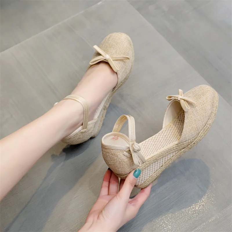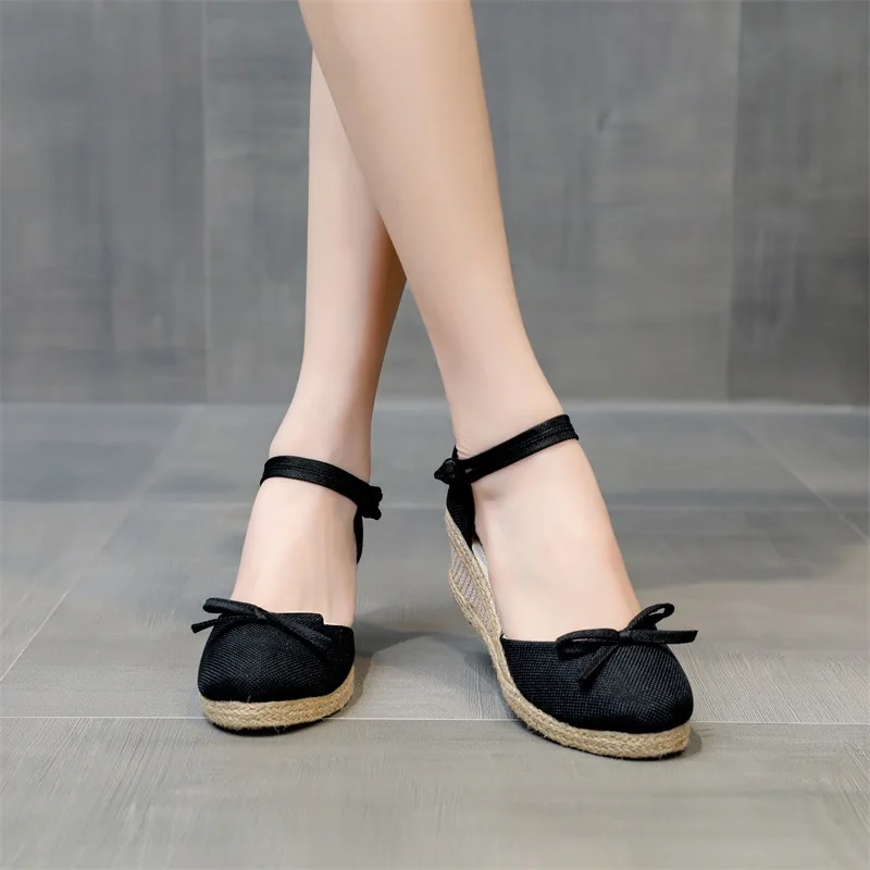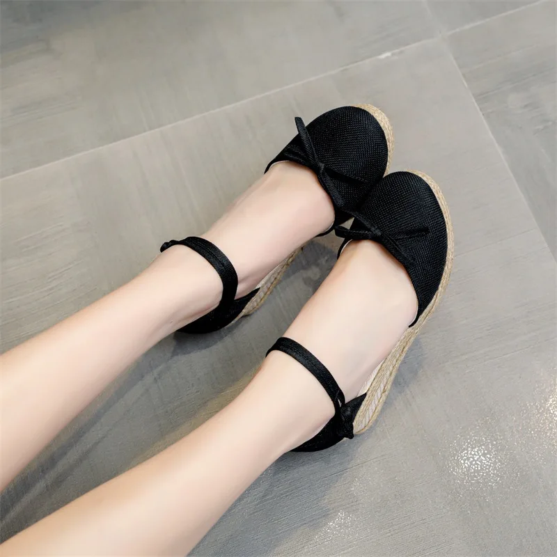 Round Toe Med Sandals Sexy Comfort Shoes for Women Summer Heels Clogs Wedge Large Size Espadrilles Platform Medium Handmade Girl