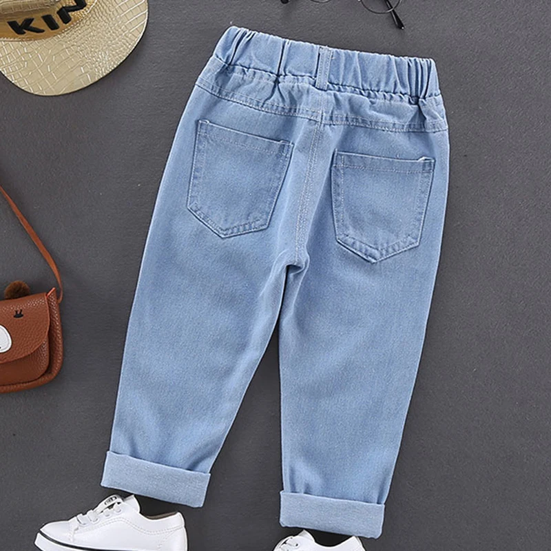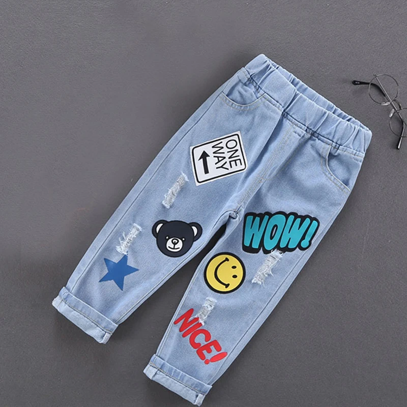 Spring Autumn Children Jeans Boys Cotton Print Splice Stretch Denim Pants Korean Teenage Trousers Wear Kids ClothingDenimRipped