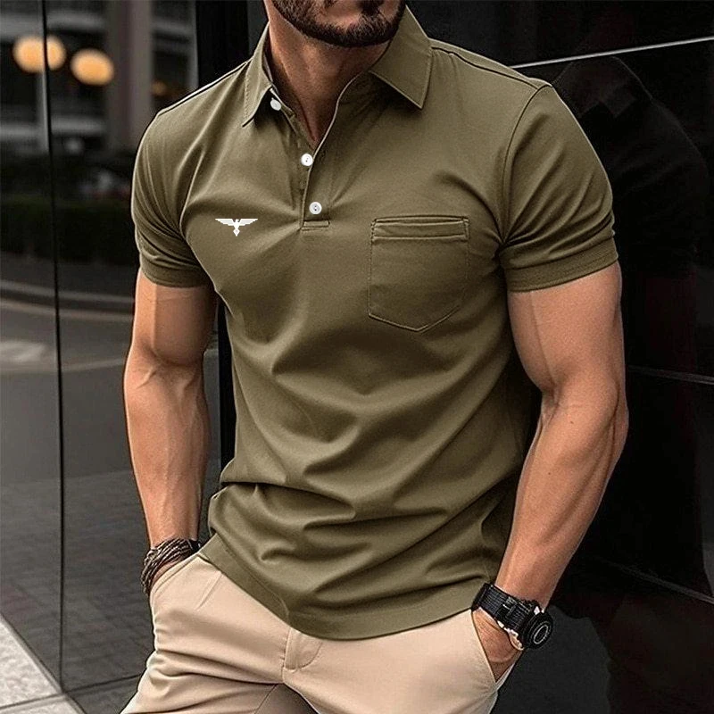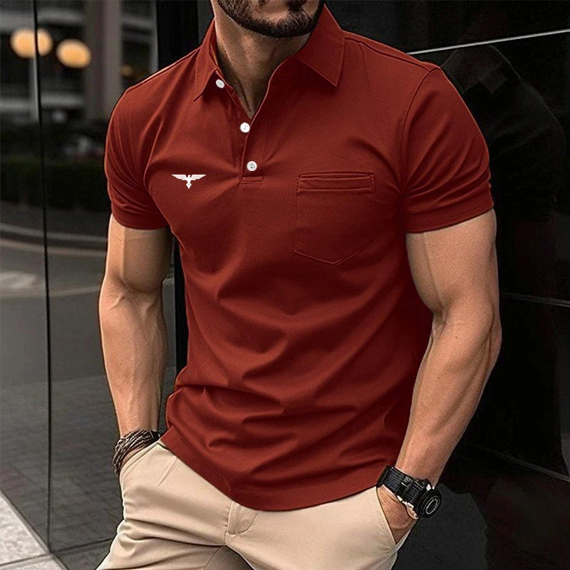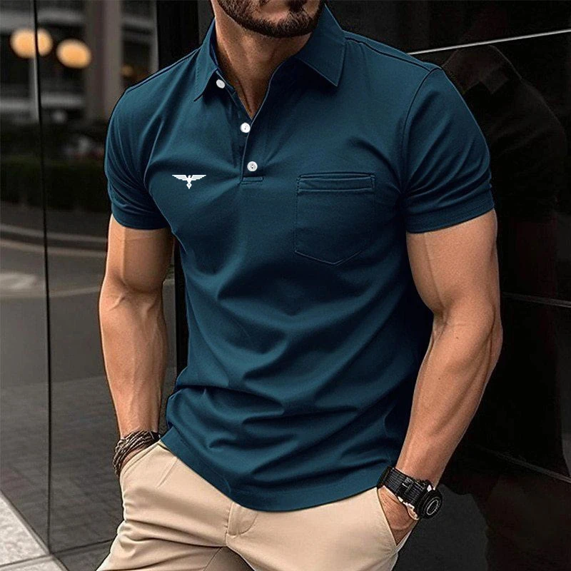 Summer Men Casual Short Sleeve Button Polo Shirt with Pocket