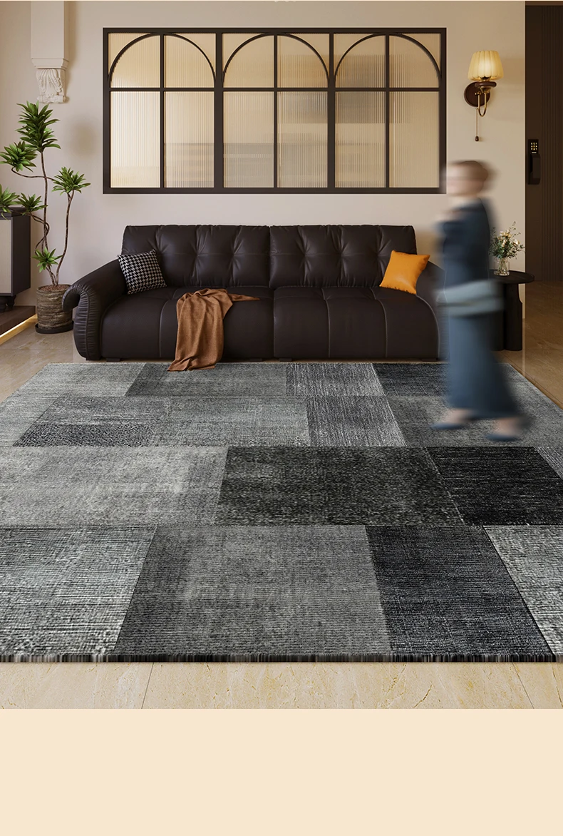 VIKAMA Summer American Retro Simple Plaid Carpet Living Room Sofa Coffee Table Foot Cushion Bedroom Bedside Rug Stain Resistance