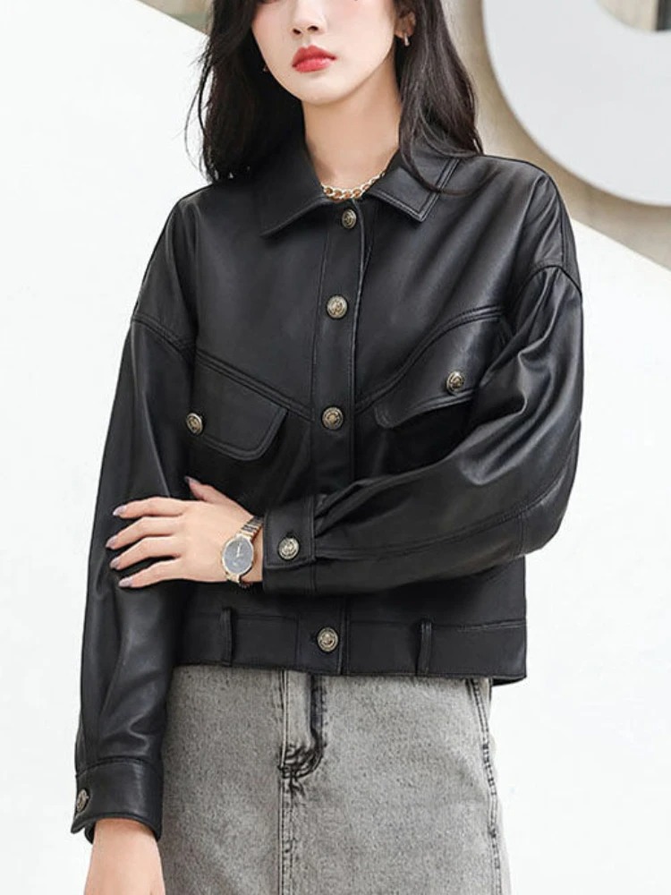 This vintage casual PU leather jacket for women features a classic turn-down collar with a cropped loose fit for effortless style. Designed with a sheepskin-inspired look and thickened construction, it provides warmth and comfort for spring and winter seasons.