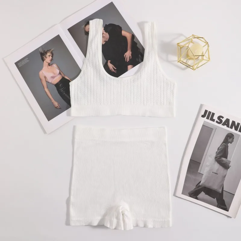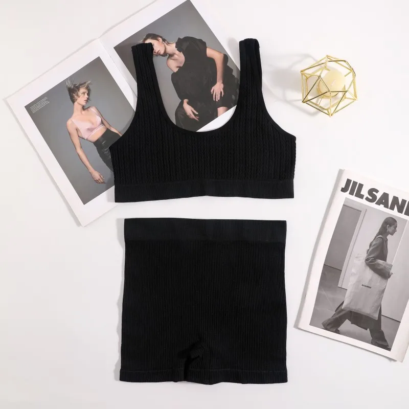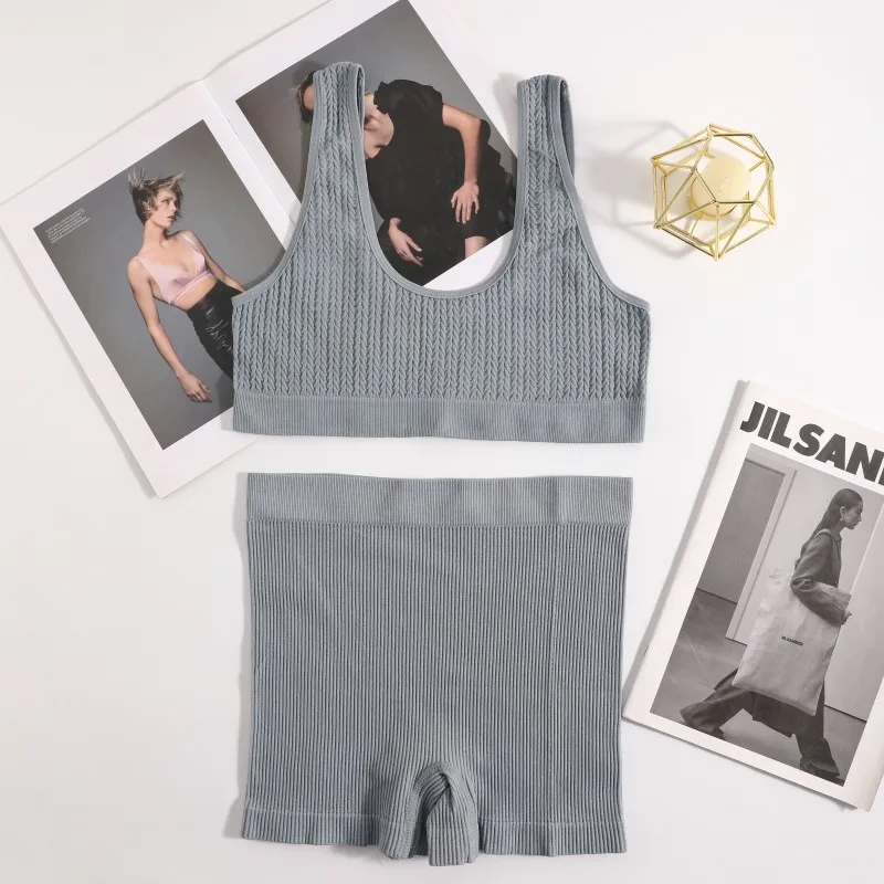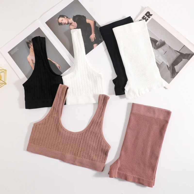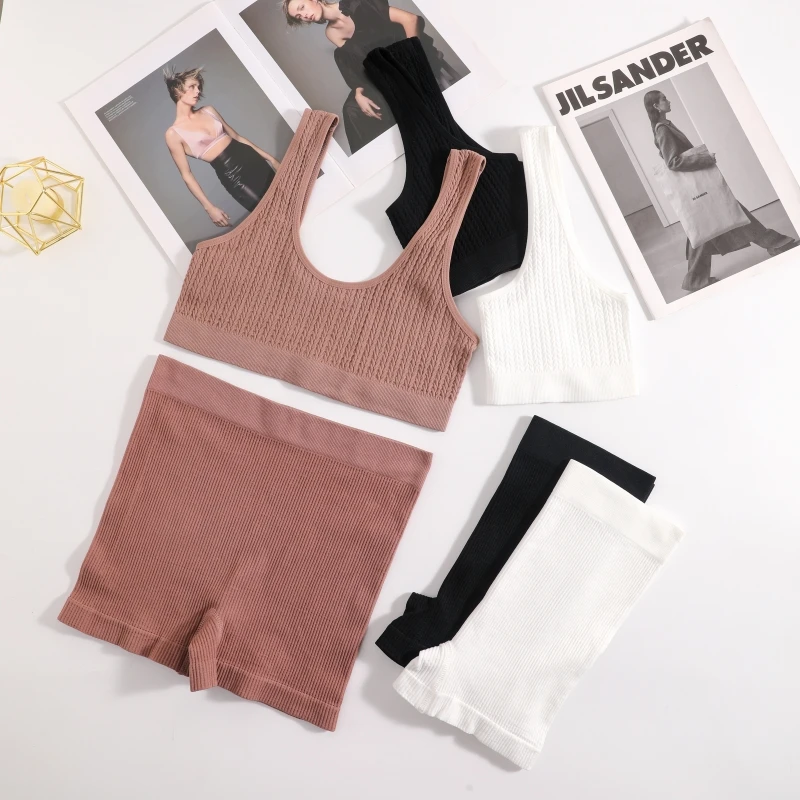Women Bra And Shorts Set Seamless Sports Bras Bralette Nonwire Lingerie Set Female Comfort Ribbed Underwear Set