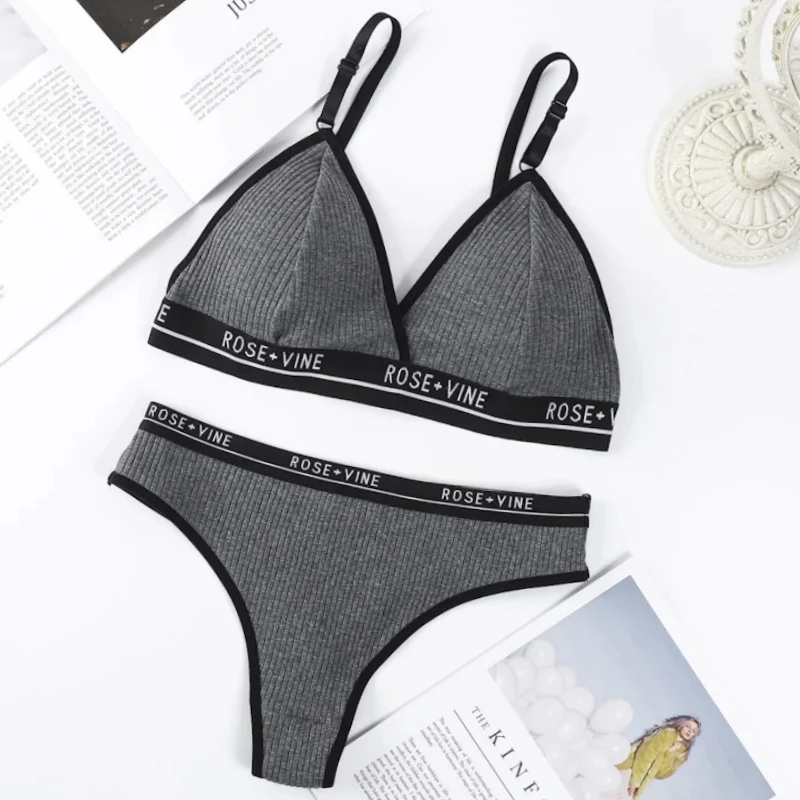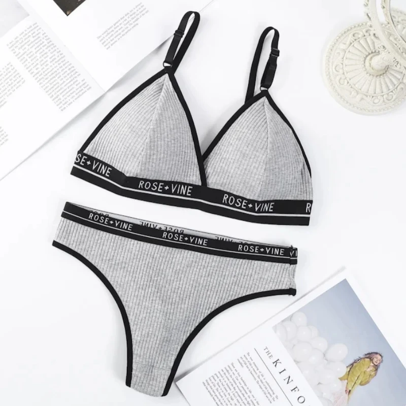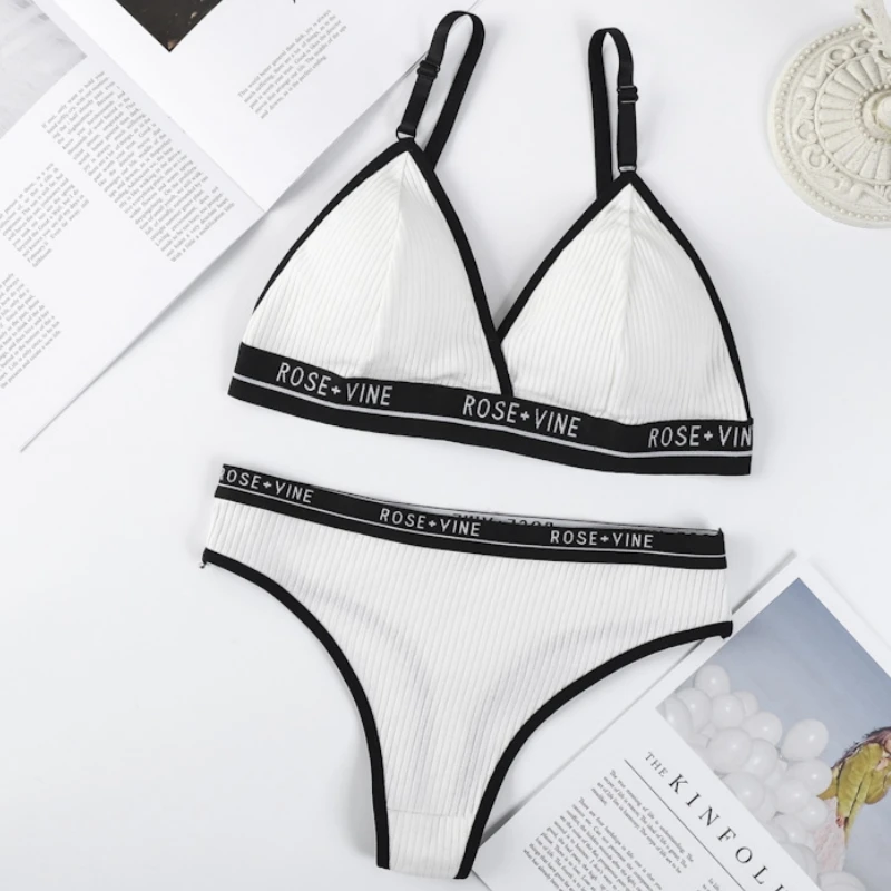 Women Cotton Bra Low Waist Panties Sexy Lingerie Set Letter Print Push Up Bras Female Seamless Comfort Underwear Set
