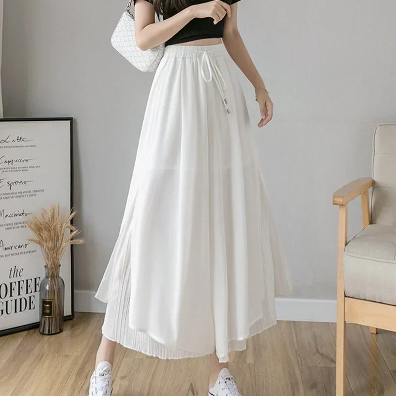Women Pants Culottes Elastic Wide Leg Irregular Hem Double Layers Korean Trousers Summer Casual Loose Pleated Pants