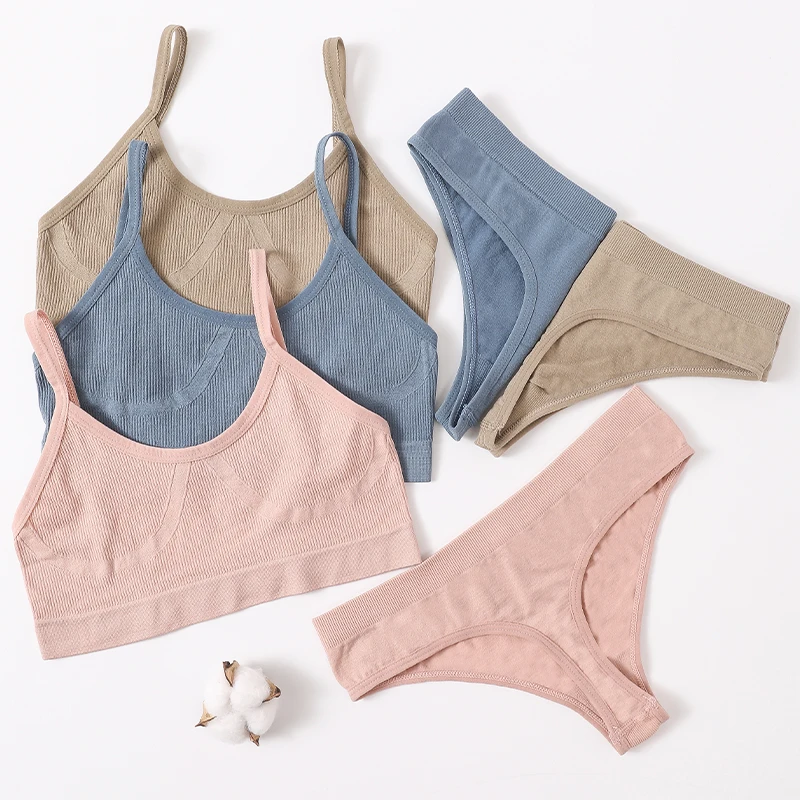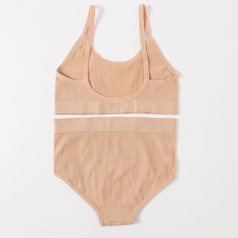 Women Seamless Bras Panties Set Sports Crop Top High Waist Briefs Sexy Lingerie Set Low Back Bralette Fitness Underwear Set